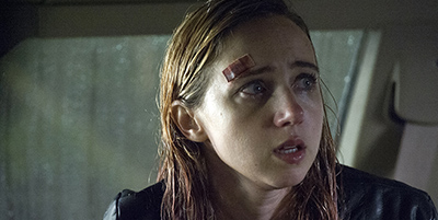 Previously titled There Are Monsters, the pic starts off with a troubled young single mother who's driving to her ex's house to drop off her daughter, presumably for good. It's a long drive that leads them well into a dark rainy night and through some secluded rural roads. And it's on one of these roads that they almost hit a wolf, nearly causing a major accident. The girls luckily only got a few minor cuts, but the car got damaged enough that they're now stranded in the middle of nowhere. Thankfully help is on the way, but they may not have much time left, as something large and sinister is lurking within the nearby woods.